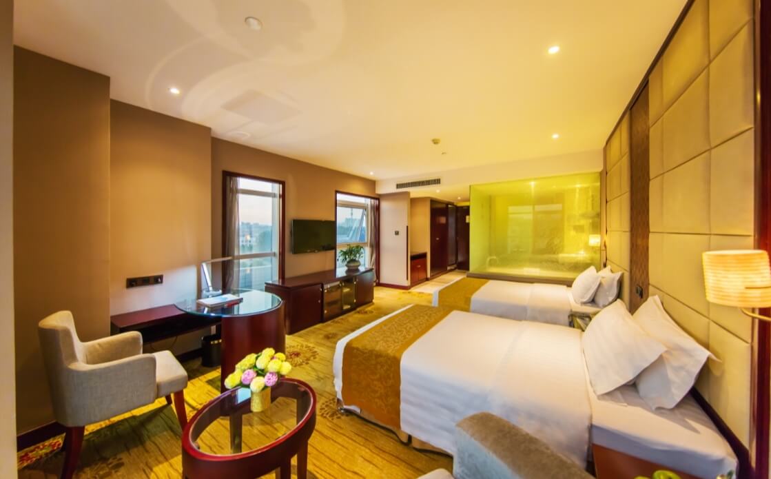酒店内设210间客房,房间内置迷你吧,丰富的酒水饮品,让您可以轻松畅饮。入住期间还可享受免费熨烫衣服及擦鞋服务。考究的家具、舒适的床品、智能化的光温控制、高端的电器及多媒体,电视服务系统、电子门显系统等多项先进的酒店客房技术,力求为您提供最舒适、最优质的入住体验。